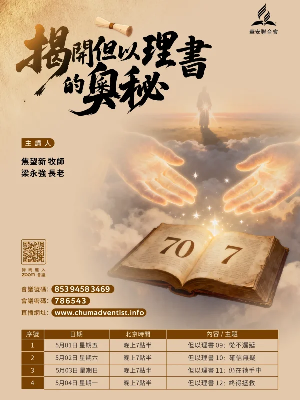 媒體佈道部與安息日學部誠意推出全新靈修短片系列《靈命拾穗》。由謝發籽牧師從聖經中為你拾取那顆最貼近當下生活的《屬靈麥穗》。4月5日正式播放。…